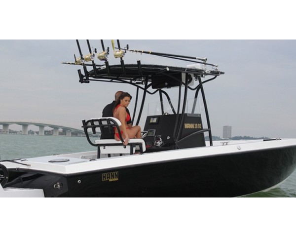 Hann Powerboats is pleased to introduce a new recreational model, the Hann 28 CC! Based on a proven offshore racing hull design, the Hann 28 CC has a 25 degree dead rise at the stern for a smooth ride and with its classic sleek line it will attract attention at the dock. With more than 100 commercial 28' hulls built to date, the Hann 28 center console recreational model is certain to last and the performance is second to none in its class.