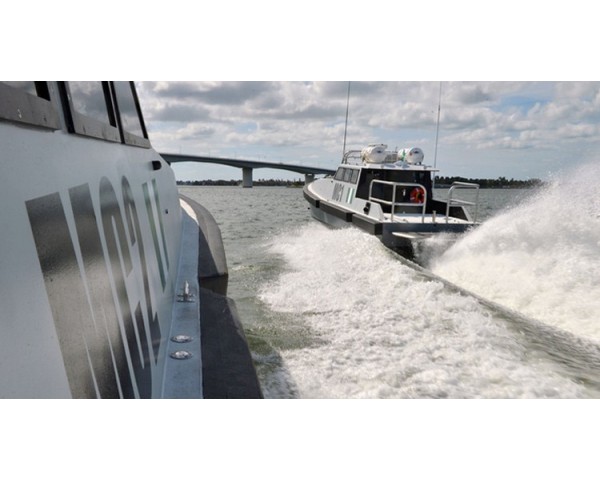 If you were confronted with an incident twelve nautical miles away, would reduce the transit time by almost ten minutes be a benefit? If the incident were a terrorist attack, a fire, or a rescue mission, the ten minutes could make a big difference in the outcome. If you had to intercept a target 100 miles away, would closing on the target at 50 knots or more be a benefit? Do you need an all-weather, high-speed, diesel-efficient, medium-range aluminum military boat? The Hann 40 Peacemaker is new, and it truly delivers high-speed, stable performance in a coastal military boat. You can now achieve 50 knot performance and conduct harbor protection offshore, before trouble gets to your harbor. Do you require any of these capabilities?